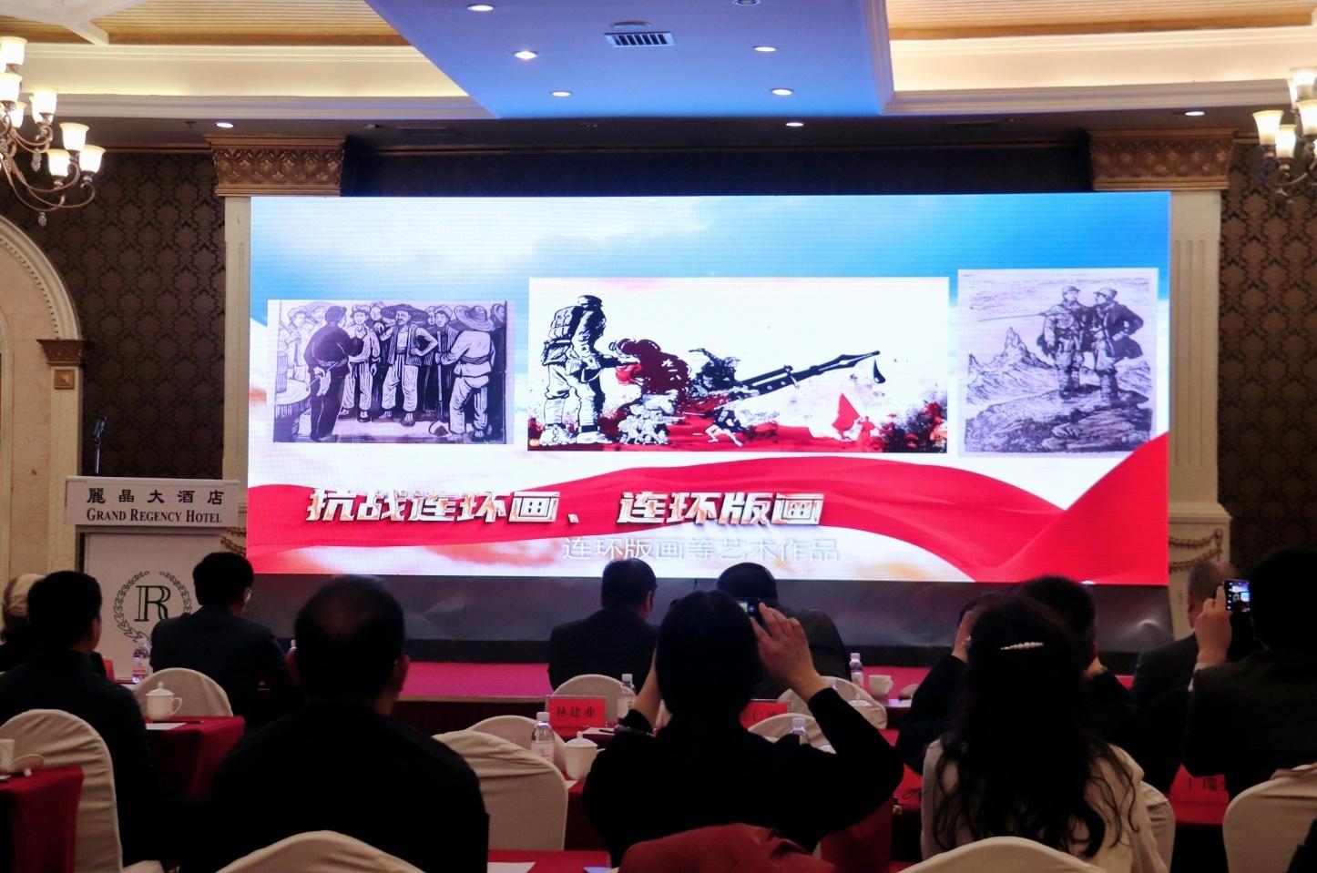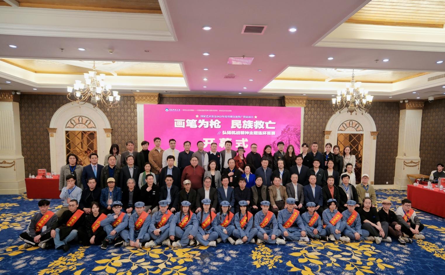 视觉设计党支部书记、系主任禹青老师主持获批立项的国家艺术基金项目“画笔为枪 民族救亡—弘扬抗战精神主题连环画展”开幕仪式在青岛丽晶大酒店成功举行。来自省内外领导和嘉宾共100余人出席了本次活动。