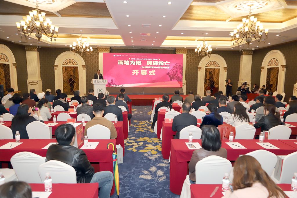 视觉设计党支部书记、系主任禹青老师主持获批立项的国家艺术基金项目“画笔为枪 民族救亡—弘扬抗战精神主题连环画展”开幕仪式在青岛丽晶大酒店成功举行。来自省内外领导和嘉宾共100余人出席了本次活动。