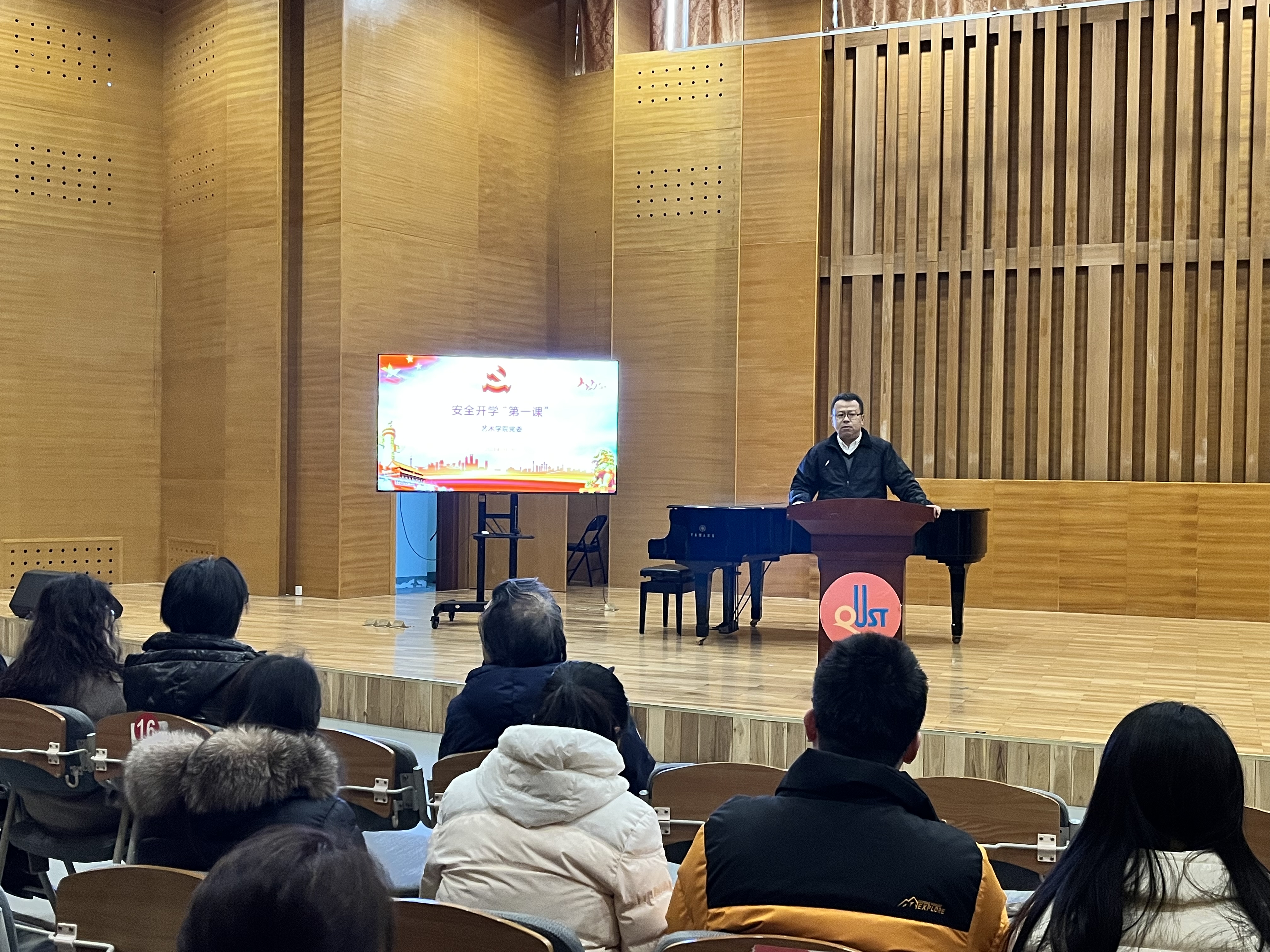 在音乐厅召开全体教职工大会。党委书记刘庆从贯彻落实习近平总书记总体国家安全观入手,他强调既要保证政治安全、意识形态安全、网络与舆情安全等“大安全”,又要精准覆盖校园安全、交通安全、消防安全、饮食安全、人身财产安全、防诈骗、防传销、防网贷等常规安全。随后全体教职工集体学习了习近平总书记关于学校安全工作的重要指示精神并观看了警示教育片。