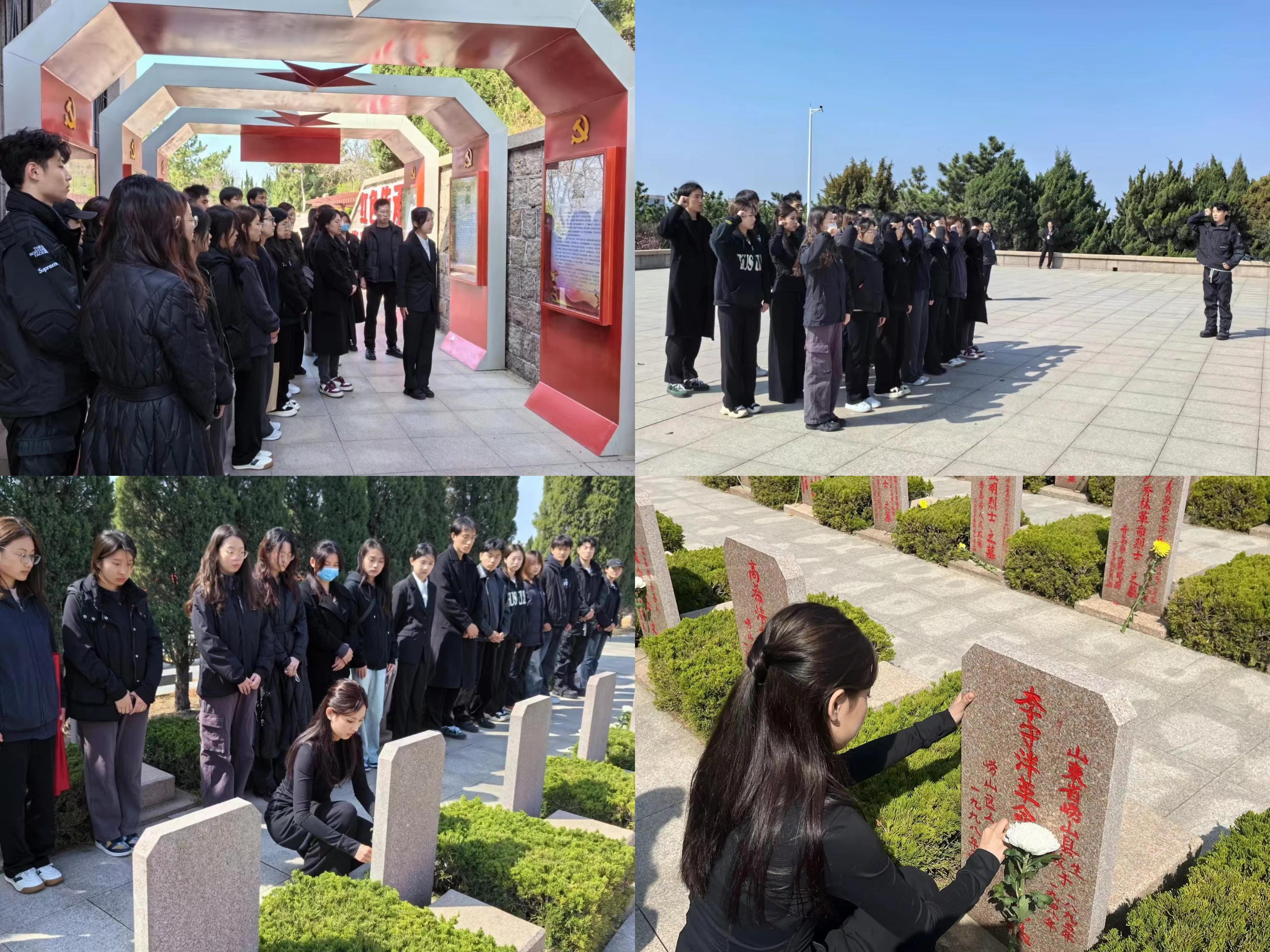 团员青年前往崂山区革命烈士陵园开展祭扫活动。师生们认真学习了革命烈士的感人事迹,用心擦拭清扫墓碑,清理陵园卫生,在烈士革命纪念碑前重温入党誓词,缅怀英烈的革命精神和不朽功绩,表达对革命烈士的深切哀思。