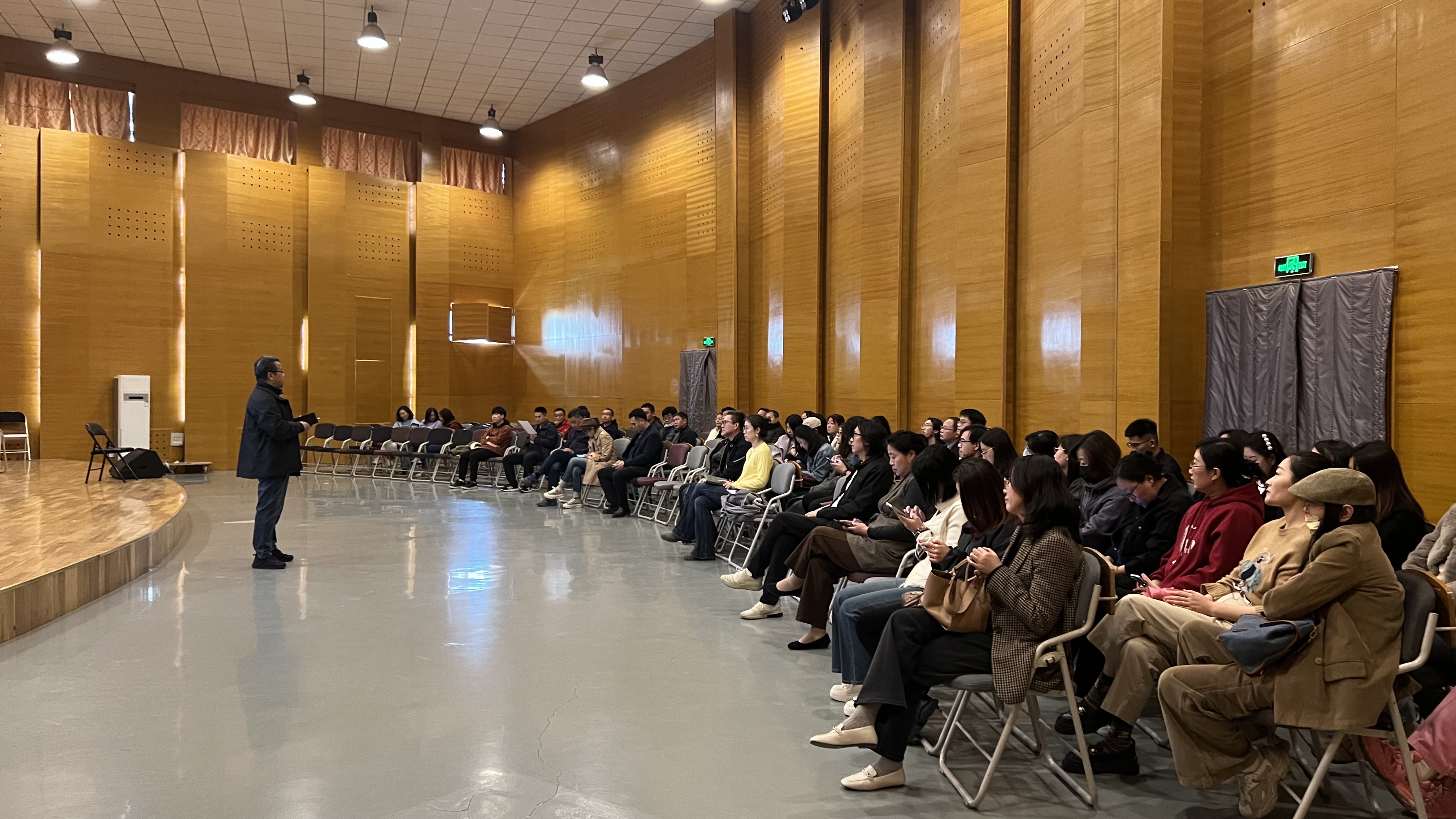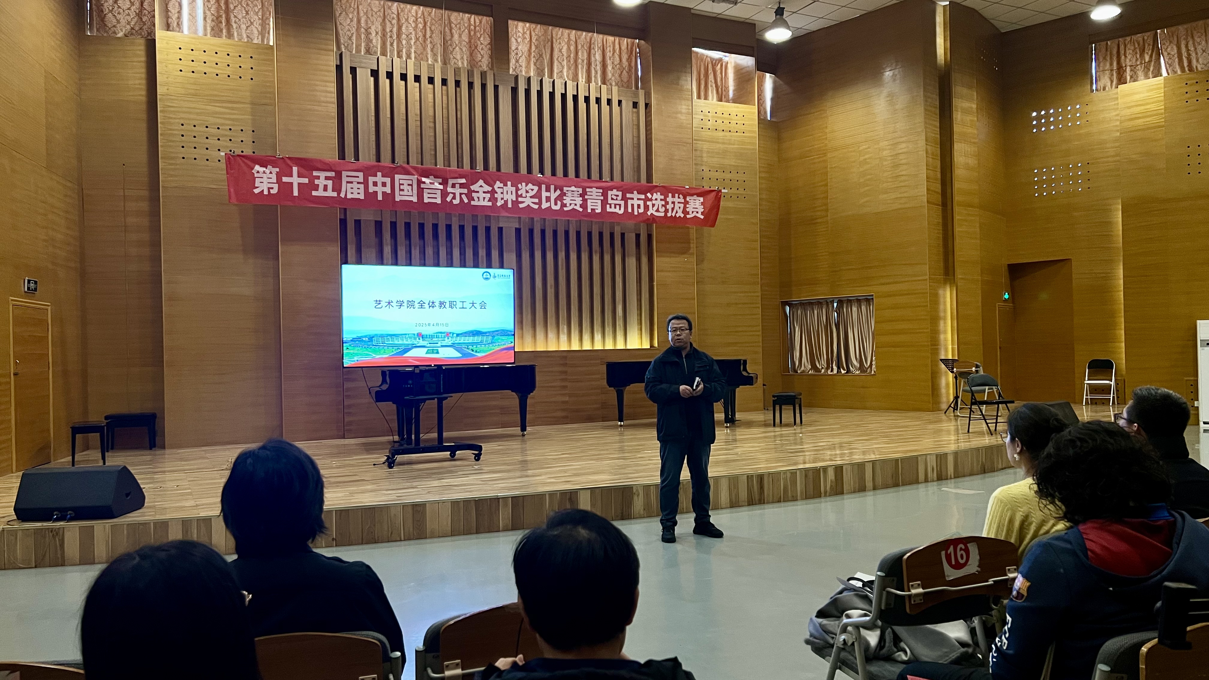 于音乐厅召开全院教职工大会,会议由刘庆主持。