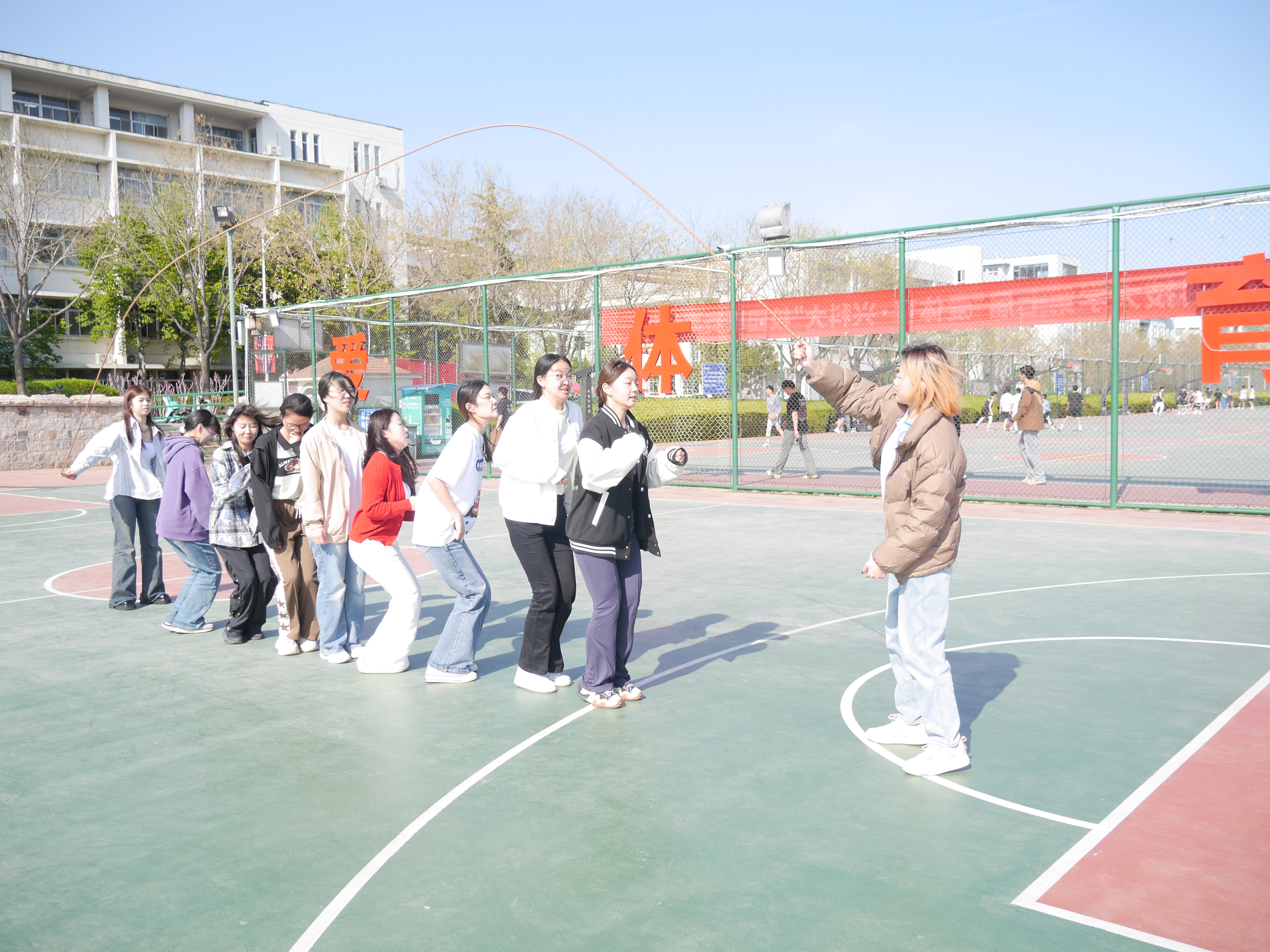 本次活动设置仰卧起坐、引体向上、长绳及拔河等多项赛事。引体向上赛场上,选手紧握横杆奋力拉引,展现顽强毅力;仰卧起坐比赛中,参赛者以标准动作挑战体能极限;长绳比赛中,八名选手与摇绳者默契配合,轻盈跳跃间尽显协作风采;拔河比赛中,各队紧握长绳、重心后倾,在呐喊中迸发集体力量,以顽强的意志挺进下一赛段。