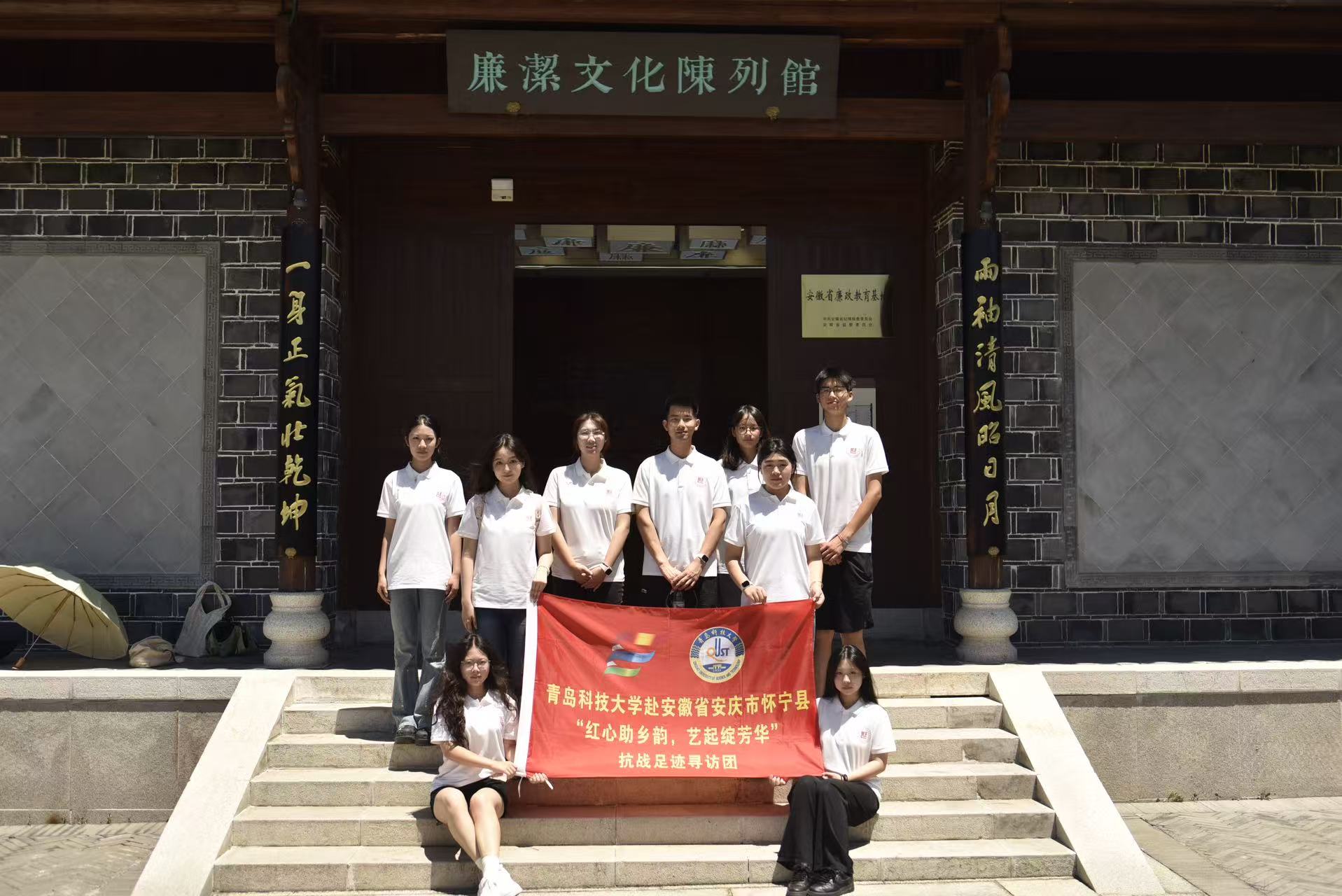 青岛科技大学“红心助乡韵,艺起绽芳华”大学生社会实践团于7月21日-7月23日走进安徽省桐城市,从廉洁文化陈列馆的纪律传承,到六尺巷的礼让哲思,再到文庙与博物馆的文脉溯源,实践团以脚步丈量历史,以心灵体悟精神,在一场场沉浸式的探访中,触摸桐城的文化肌理,汲取成长的精神养分。