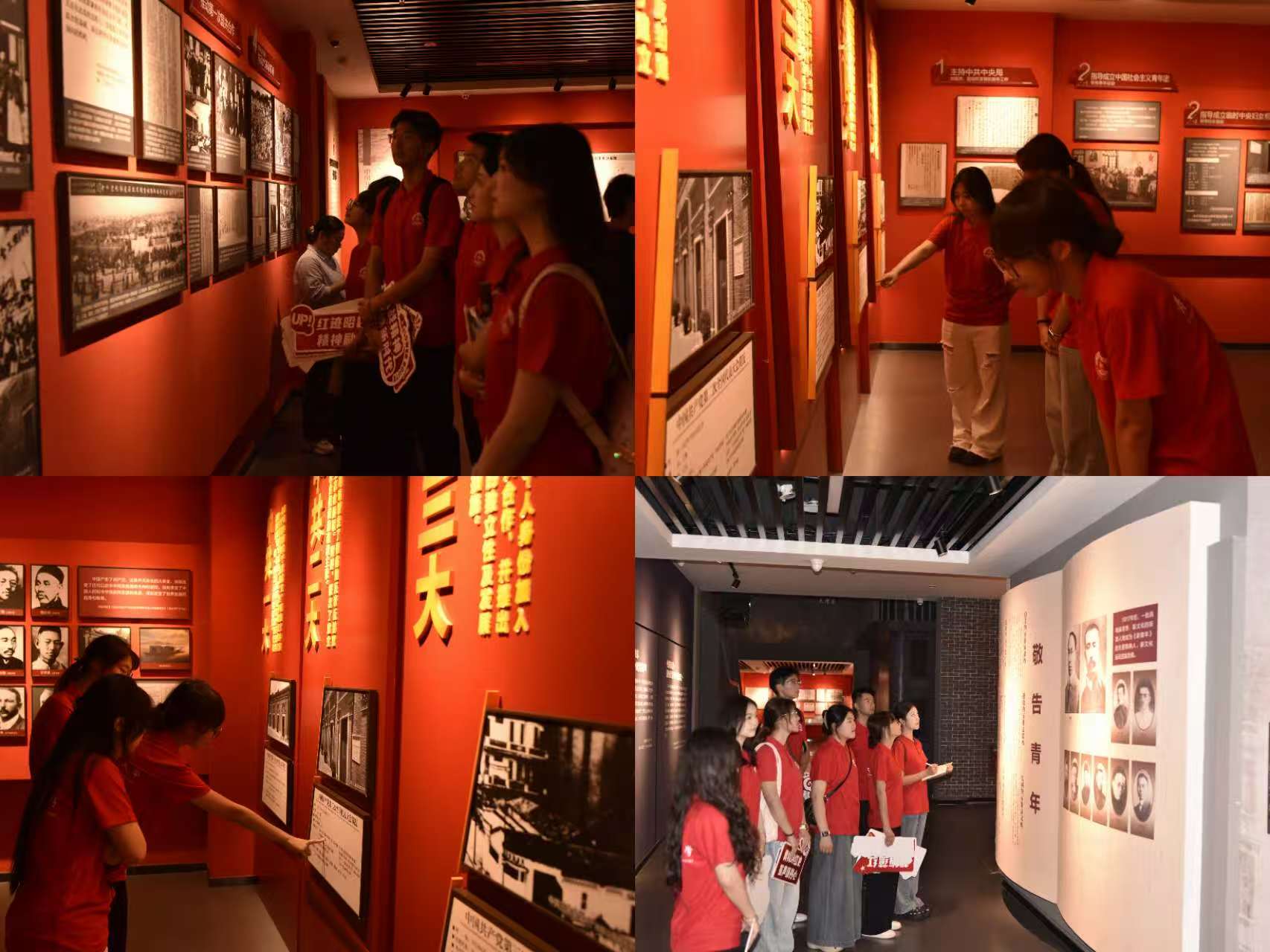 实践团重点参访了陈独秀生平事迹陈列馆。在馆内,队员们通过详实的史料与生动的讲解,系统学习了陈独秀先生从领导新文化运动、推动五四风雷到参与创建中国共产党的光辉历程。一件件珍贵文物与历史图片,引领青年学子们重回那个风云激荡的年代,深刻体会早期共产党人为民族觉醒与复兴所作出的艰辛求索。随后,团队步入庄严肃穆的独秀园,在先生长眠之地,团员们驻足默思,感悟“新青年”精神穿越时空的力量。园内“科学”“民主”石刻与《新青年》碑刻,成为同学们感悟建党初心、传承红色基因的生动教材。队员们表示,将努力把这份红色滋养融入未来的艺术表达与文创设计中,担当起新时代传承红色基因的使命。