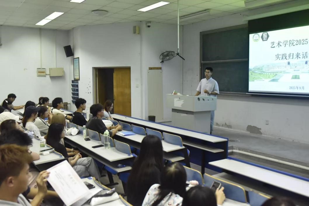 分享会上,实践团队代表与个人实践代表依次登台。各团队以传承红色精神、助力乡村振兴、弘扬非遗文化、践行基层服务等为实践主题,通过图文、视频等形式,生动讲述了用脚步丈量祖国大地,在实践中克服困难、服务社会的经历;个人代表则结合自身参与艺术采风、社区服务等活动的感悟,分享了将专业知识转化为实践能力的收获。鲜活的实践案例与真挚的个人体会引发台下阵阵掌声。