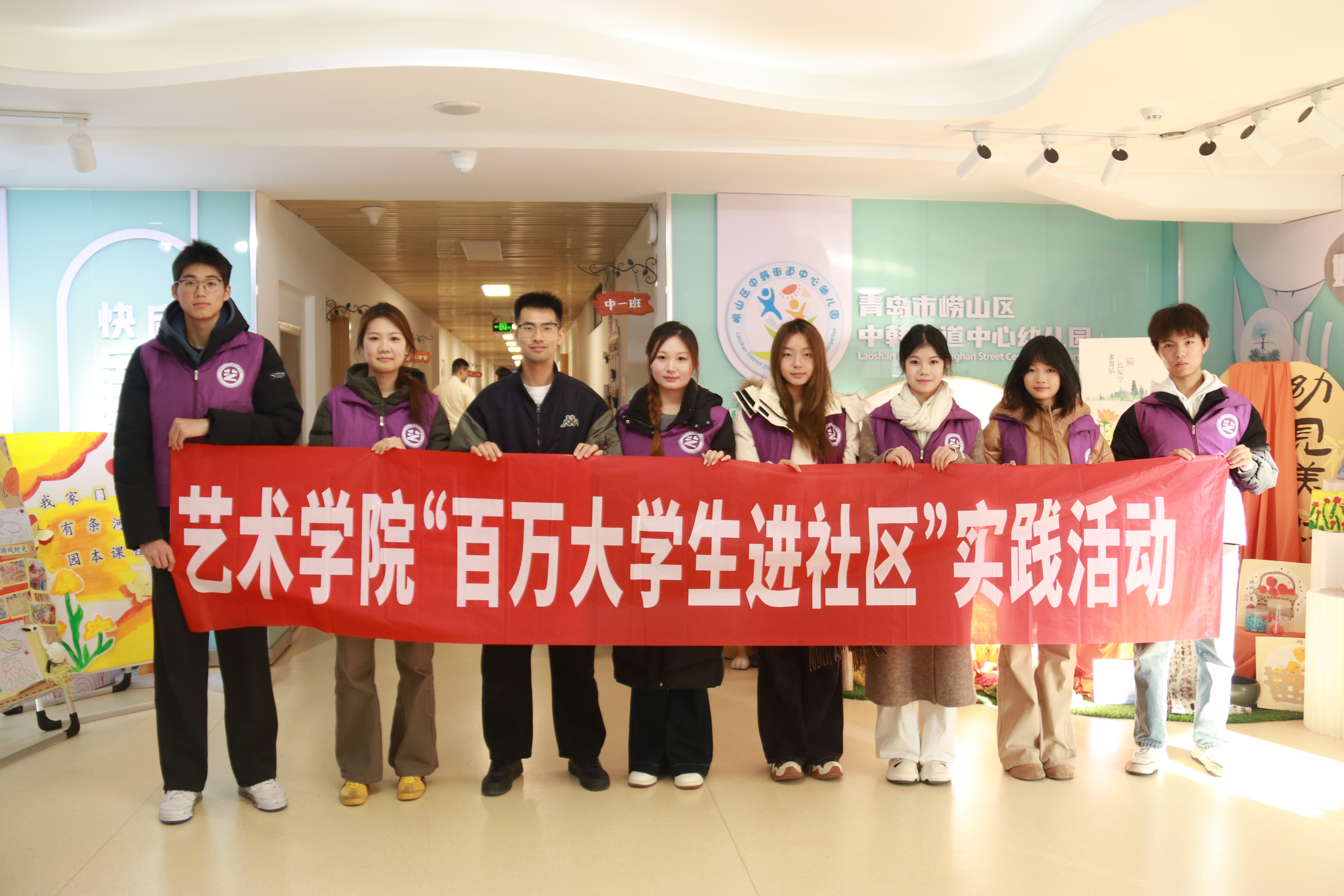 “艺路同行”志愿服务队走进崂山区中韩街道中心幼儿园,开展“落叶拾趣·创意手作”志愿服务活动,以艺术创意丰富幼儿成长体验。
