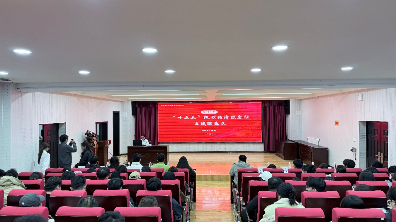 活动伊始,“理响”宣讲团成员王靖森带领全体参与者唱响共青团歌。随后,宣讲团围绕党的二十届四中全会精神展开宣讲,详解会议相关概念,回顾“十四五”时期国家多领域历史性成就,深入解读“十五五”规划的六大原则、七大目标及十二项重点任务,阐明其对2035年基本实现社会主义现代化的支撑作用。