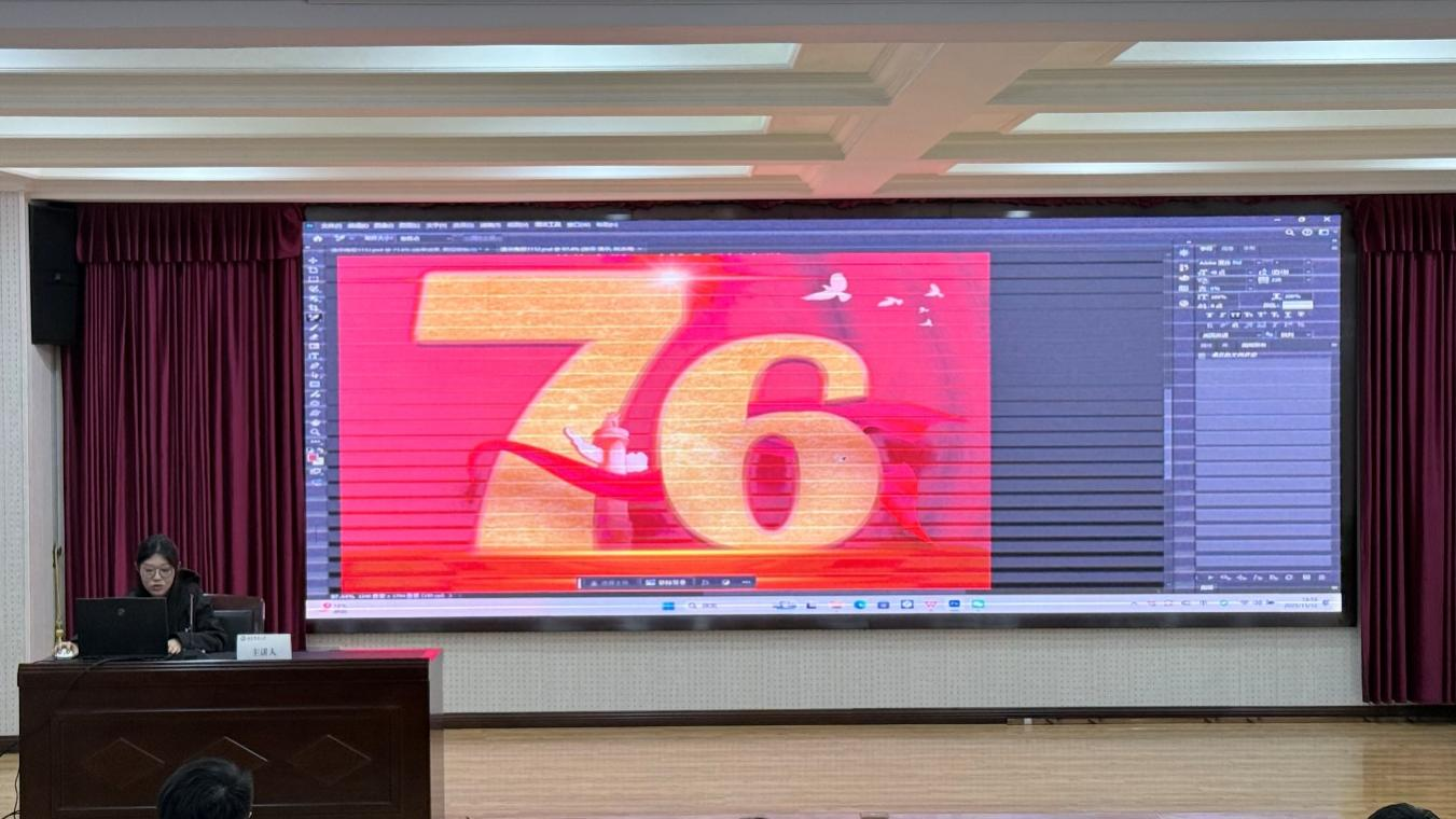 研究生会设计部成员姜嘉欣、范木林为现场同学带来PS与即梦AI实操体验,系统讲解PS工具使用、蒙版应用等基础技能,分享排版设计原则与即梦AI生图提示词公式,助力青年提升视觉表达能力。