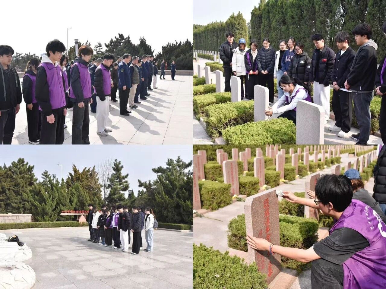 组织青年学生前往崂山革命烈士陵园祭扫。现场同学们整齐列队,敬献花束、集体默哀,随后参观场馆,聆听英雄事迹,在哀思中感悟先烈精神,坚定传承红色基因、勇担时代使命的决心。