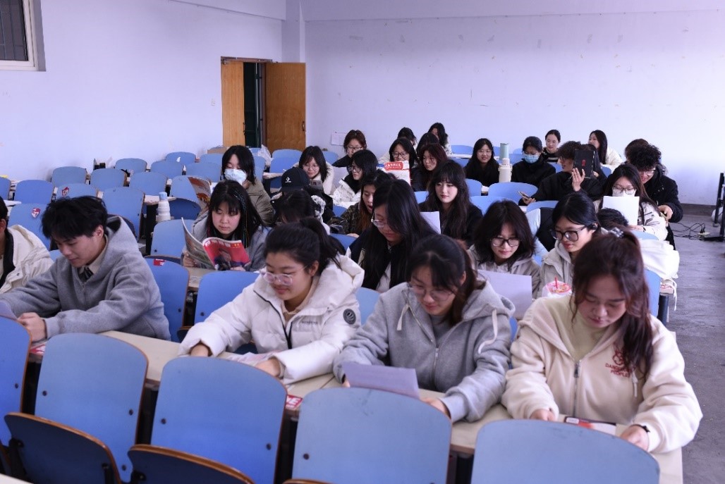 活动现场,主讲人导读了《红岩》《红星照耀中国》等经典书目,带领同学们重现经典片段。同学们通过诵读、讨论等方式深入剖析主人公坚强的意志与追求光明的信念,深度体悟了革命先辈“革命理想高于天”的精神品格,坚定了在新时代中国青年的使命担当。