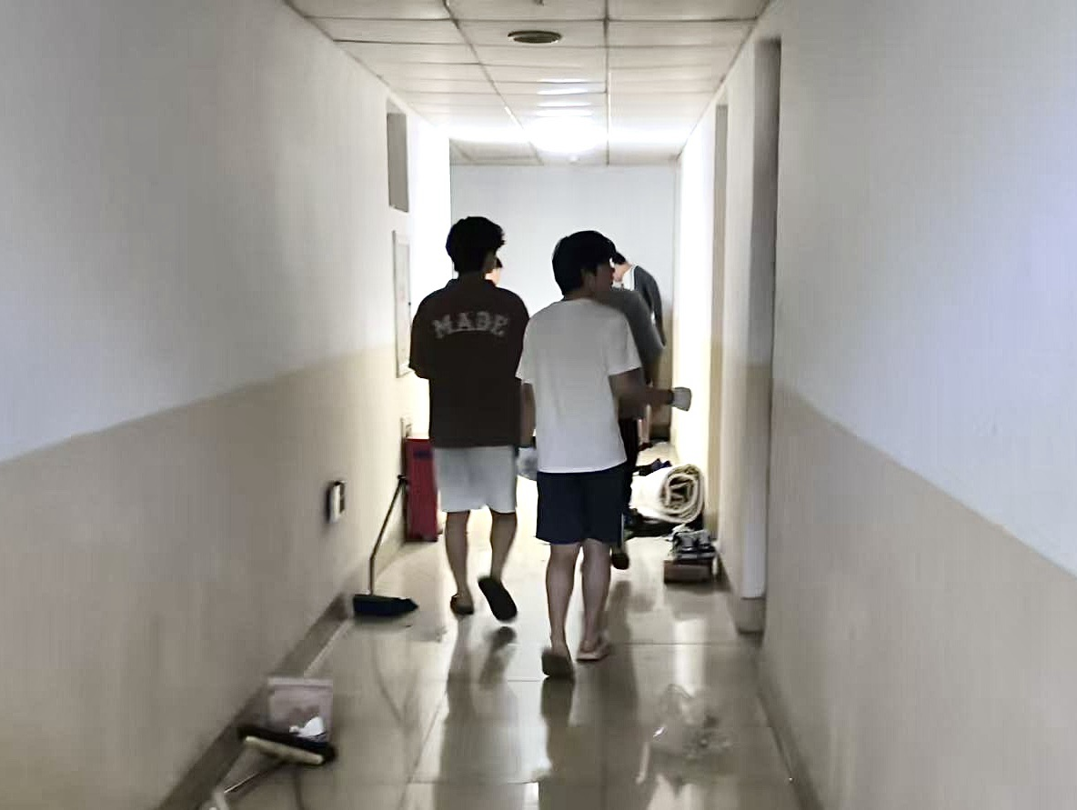 毕业生们清空个人物品、扫除积攒灰尘、维护好公共设施、主动将闲置物品带离宿舍,用干净的床铺、明亮的窗户、一尘不染的地面进行一场特殊的告别仪式。学生骨干穿梭于宿舍楼道,帮学长学姐分类打包、搬运杂物。