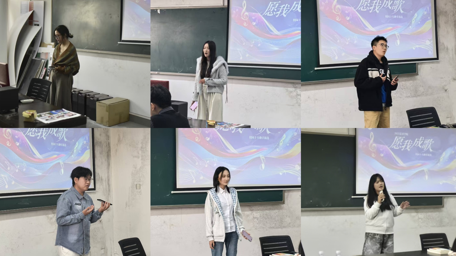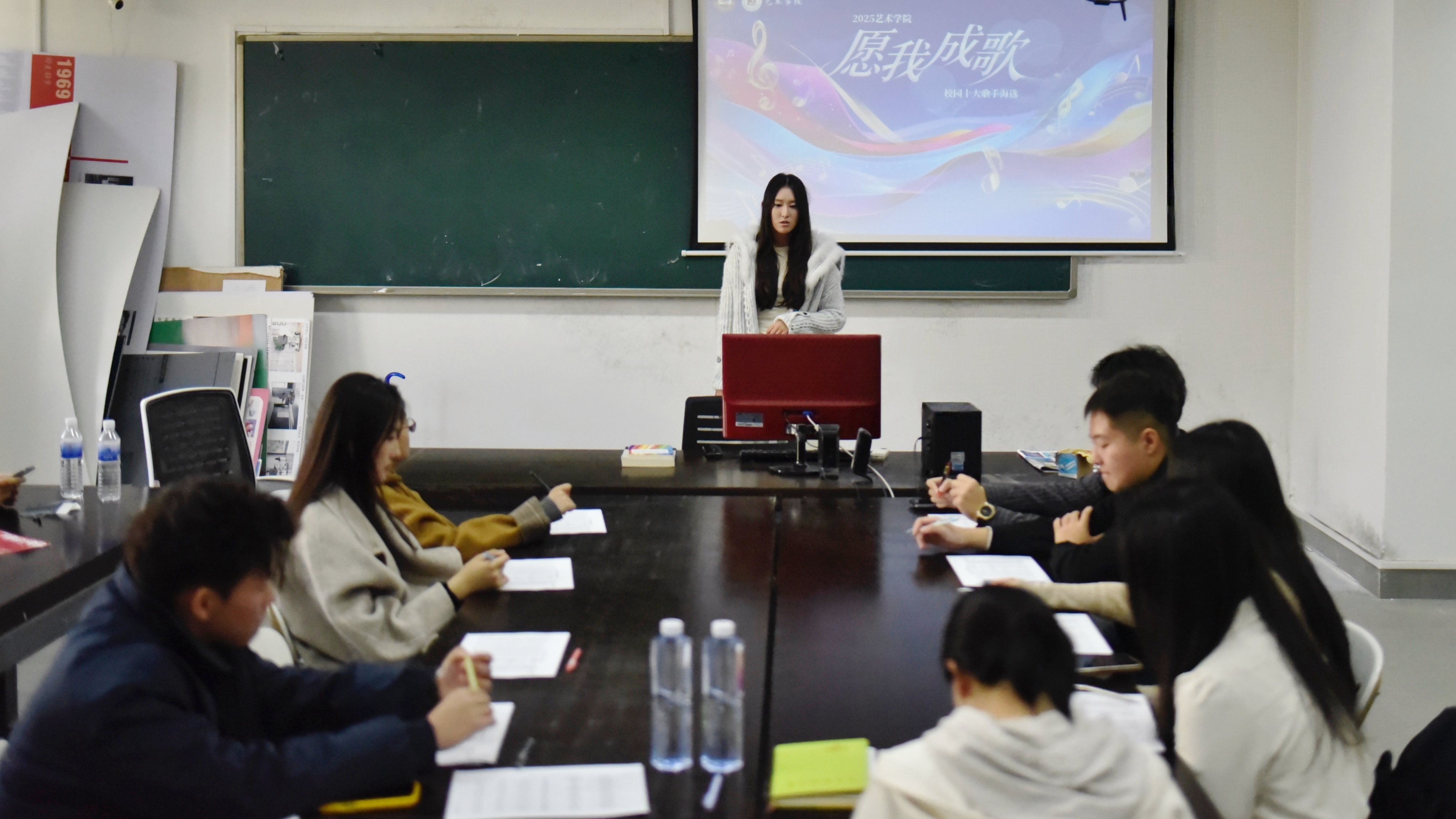 为丰富校园文艺生活,充分展现艺术学子的青春风采与专业素养,10月28日下午,七星彩开奖直播 举办“愿我成歌”校园十大歌手选拔赛。七星彩开奖直播 辅导员宋晨曦、盛士峰、各年级学生及参赛选手共同参与此次活动。