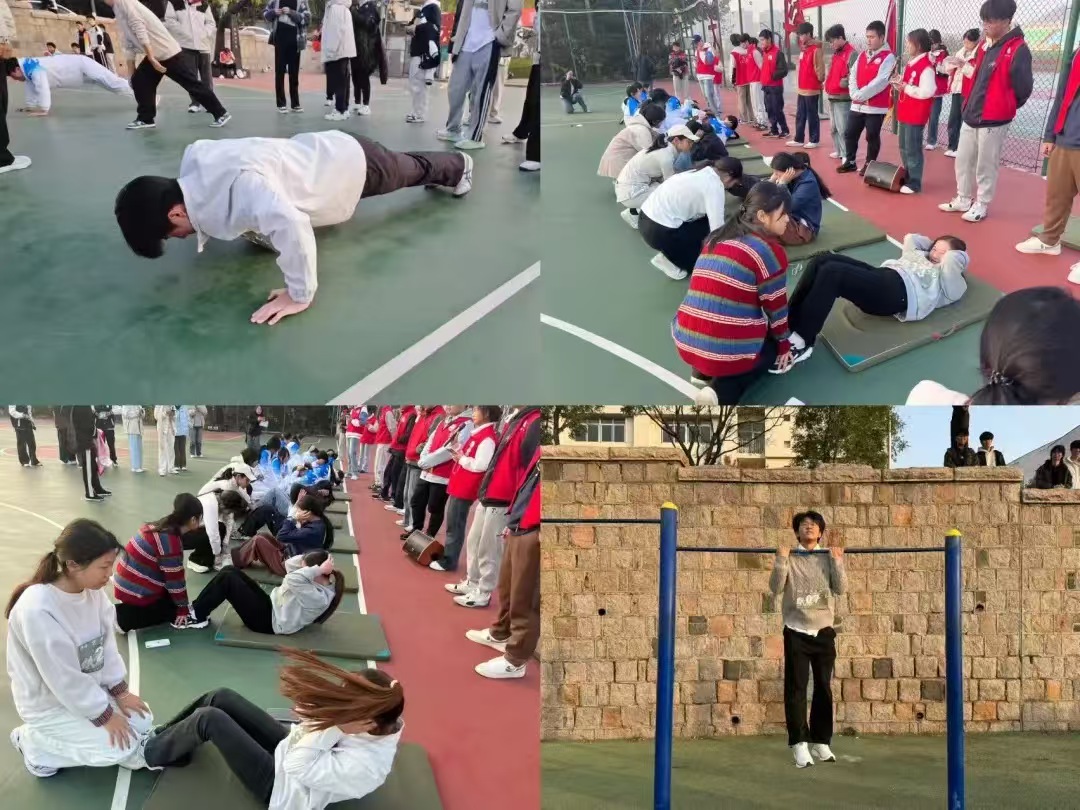 参赛学子分赴各赛场,男生组全力冲刺引体向上、俯卧撑项目,女生组专注完成仰卧起坐比拼。选手们斗志昂扬、全力以赴,赛场之上尽显拼搏姿态,充分诠释了团队协作与竞争意识,展现了艺院学子朝气蓬勃的精神风貌。