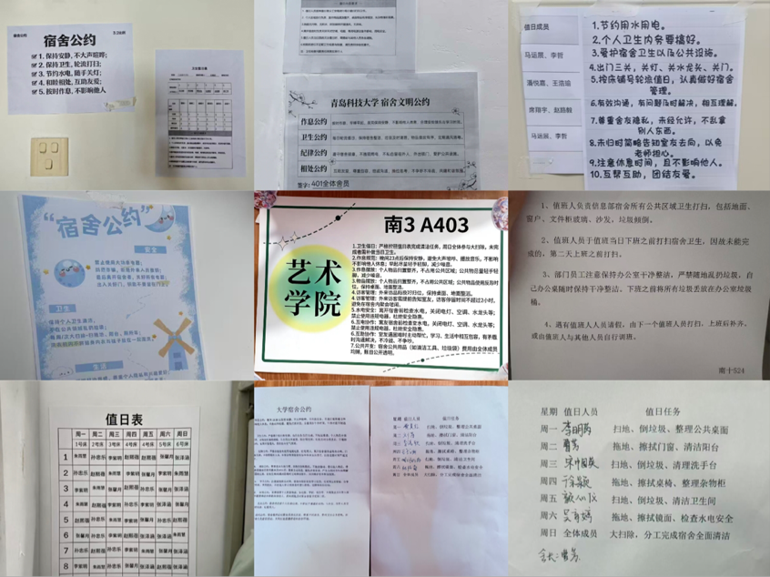 首先组织各宿舍集体讨论、共同制定了符合本宿舍特点的《宿舍文明公约》,明确了成员在安全、卫生、作息、人际关系等方面的行为规范与共同承诺,有效提升了学生的规则意识与集体归属感。同时,七星彩开奖直播