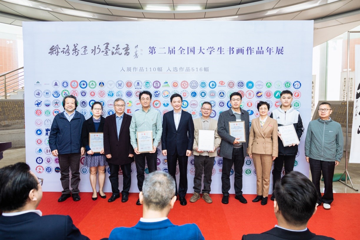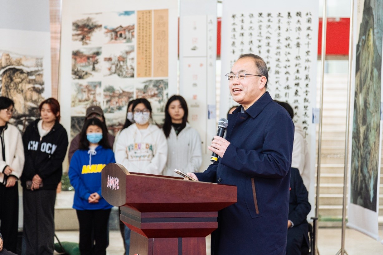 开幕式上,丁林代表学校向年展开幕表示祝贺,并介绍了学校的基本情况和学校美育教育的情况。他强调,全国大学生书画作品年展由青岛科技大学、中国硬笔书法协会和北京流香画院共同发起,每年由各高校轮流主办,旨在为全国大学生提供了一个交流、展示自己作品的平台。展览规格高、权威性强、参与面广、影响力大,反映了当前大学生书画教育的教学理念和创作成果,代表了新时代大学生书画艺术创作的整体水平和精神风貌。