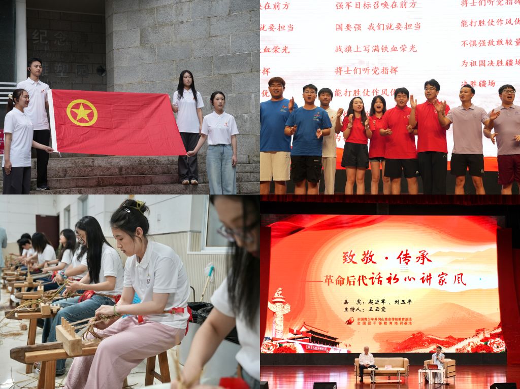 在革命烈士陵园,同学们向革命英烈敬献花圈、默哀追思,在革命先辈长眠之地重温入团誓词,青春誓言久久回荡,传递着新时代青年赓续红色血脉的决心。音乐党课上,全体队员学唱当地红歌,合唱经典红歌,在阵阵歌声中回望革命岁月。“学编红军草鞋”体验课上,团队成员在亲手编草鞋的过程中感悟到红军艰苦奋斗、坚韧不拔的精神,亲兵爱民、严守纪律的作风和革命乐观主义的境界。在“红军的一天”体验活动中,团队成员在山中进行三小时急行军,在当地老乡家中自制红军餐,体会军民鱼水情。在革命后代讲家风访谈活动中,伟大而朴实的革命精神随着革命后代的讲述,在青年学子的心中生根发芽,激励着大家对党忠诚、矢志报国。