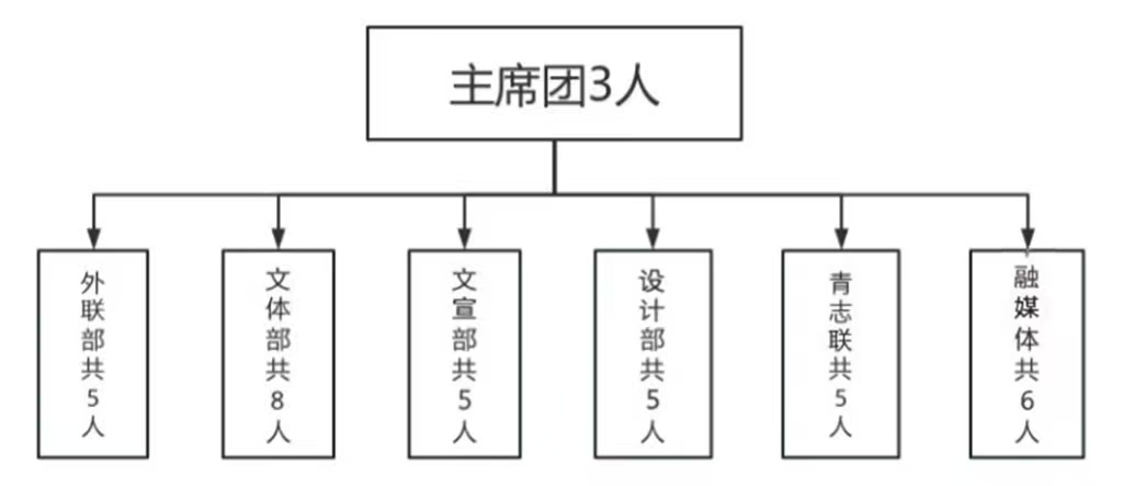 学生会全体成员,涵盖主席团成员、各部门负责人及志愿者。