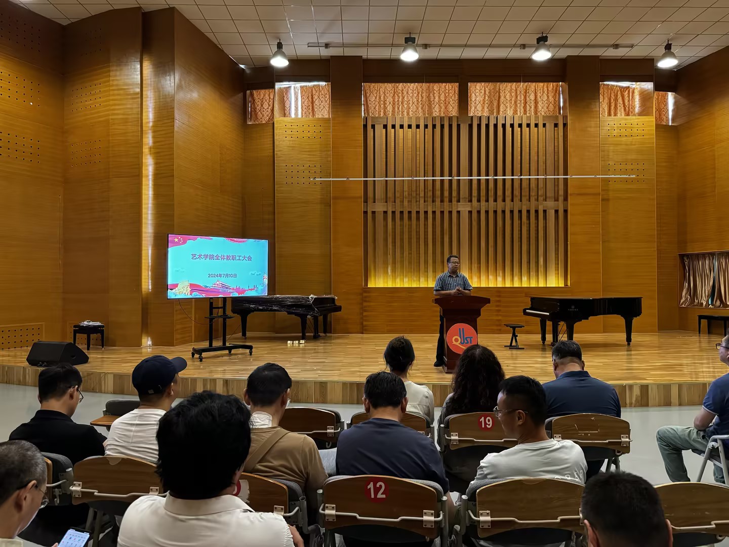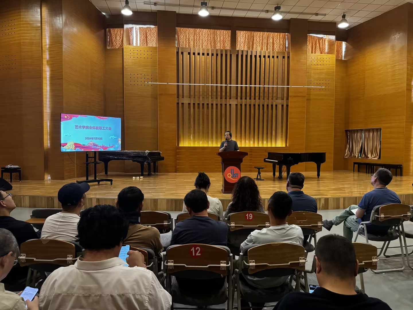 于音乐厅召开全体教职工大会。七星彩开奖直播
