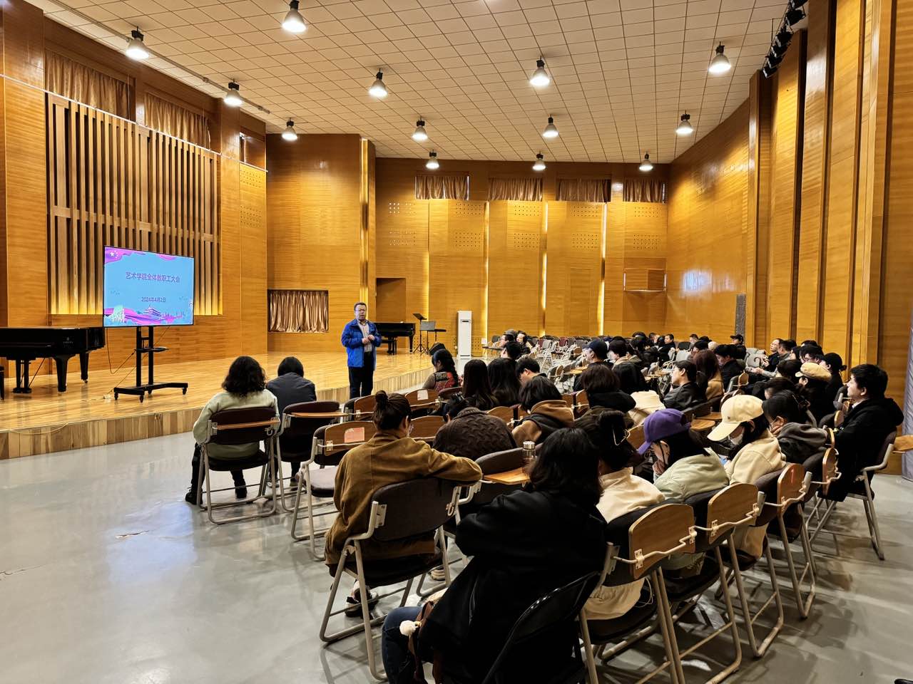 全院教职工大会暨科级干部选拔民主推荐会在学校美育中心音乐厅召开,七星彩开奖直播