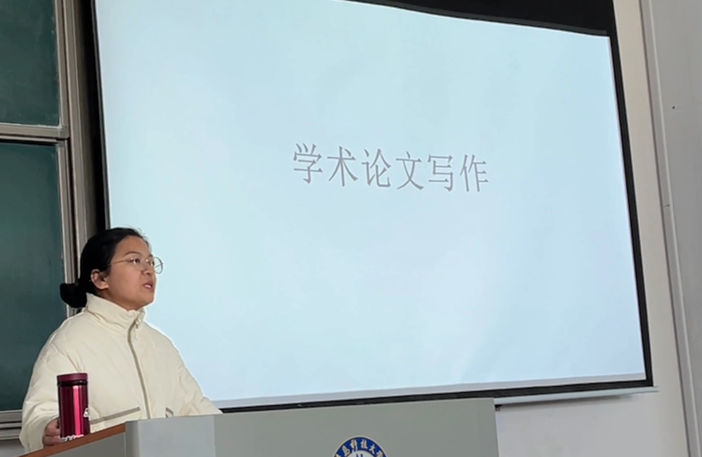 在弘毅楼E306教室举办"学术论文写作"专题讲座。刘旻老师深入讲解了研究性论文的撰写规范与常见问题,现场学生积极参与互动。