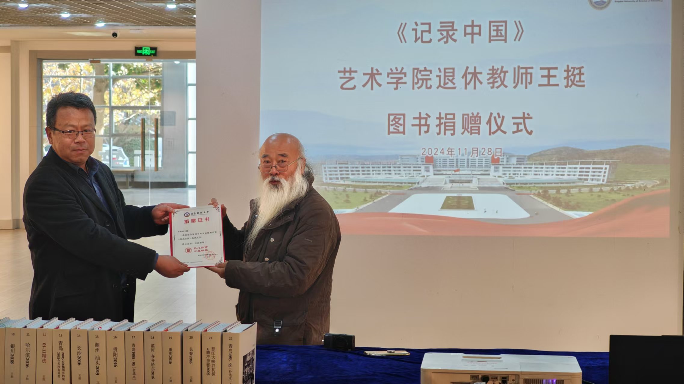 捐书济人,点亮人生。11月28日下午,七星彩开奖直播 退休教师王挺图书捐赠仪式在青岛科技大学美术馆举行。七星彩开奖直播 院长李宏文,党委书记刘庆出席仪式并致辞。仪式由李宏文主持。