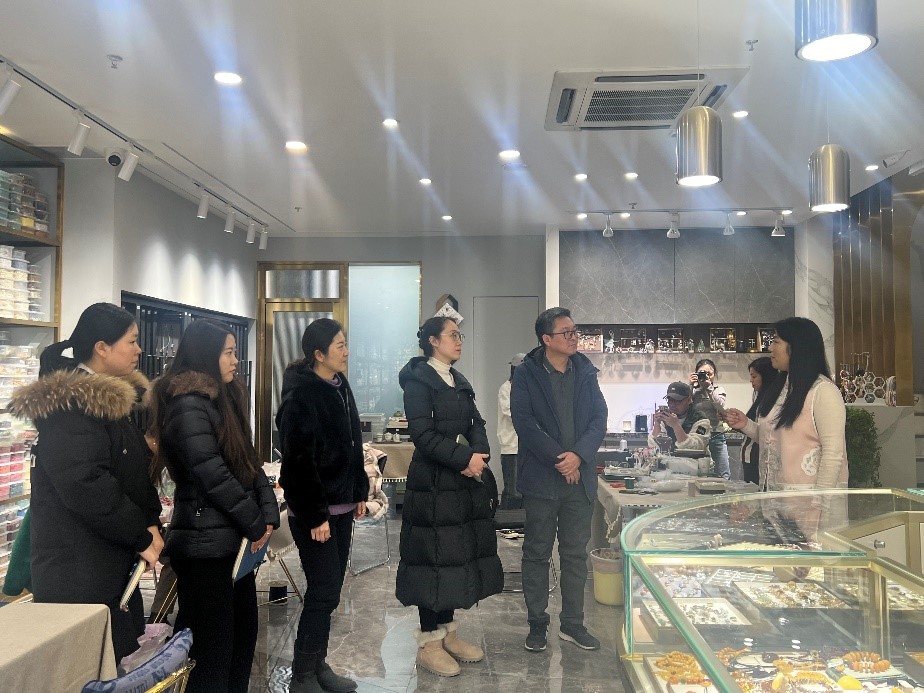副院长勾锐,党委副书记兼副院长丁一宁,工业设计系教师夏琳及辅导员一行赴青岛魅羽工艺品有限责任公司开展“访企拓岗促就业”专项行动。